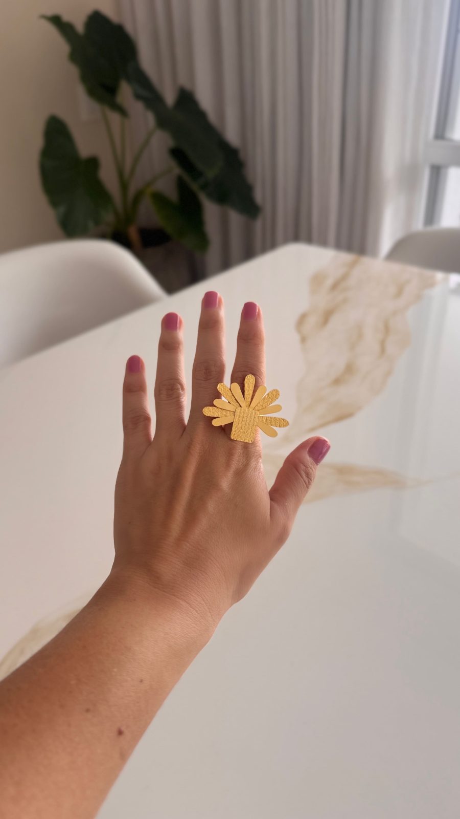 Anillo ajustable elaborado en bronce con baño en oro de 24kt