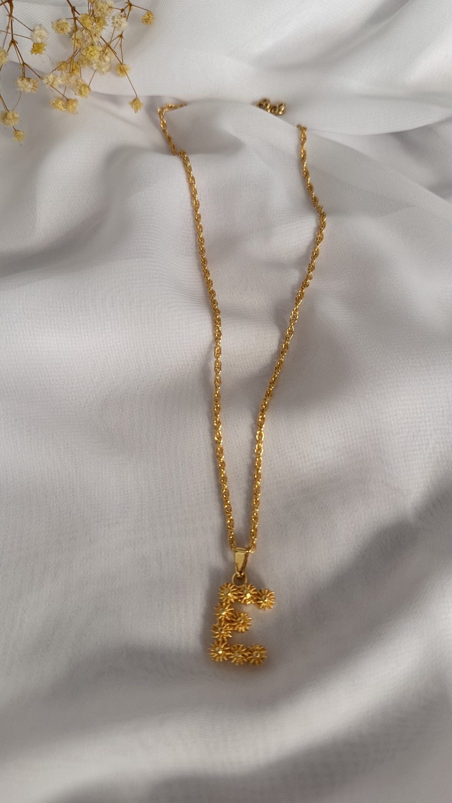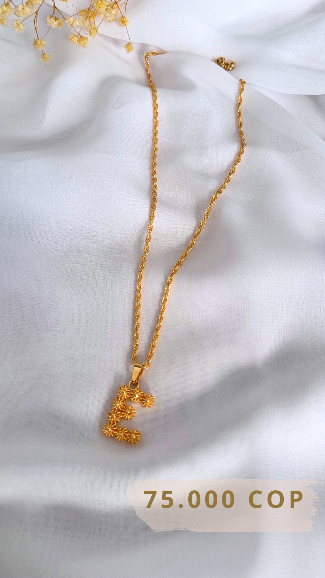 Elaborada artesanalmente en delicados hilos de bronce con baño en oro de 24kt, cada inicial está compuesta por pequeñas flores tejidas con la delicada técnica de filigrana, simbolizando amor, identidad y conexión.